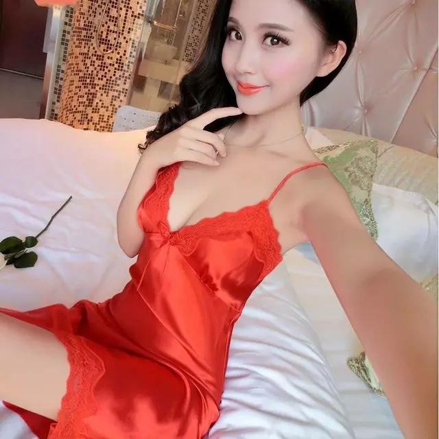 1 piece silk short length nighty, soft and smooth fabric. Available in red and black color.